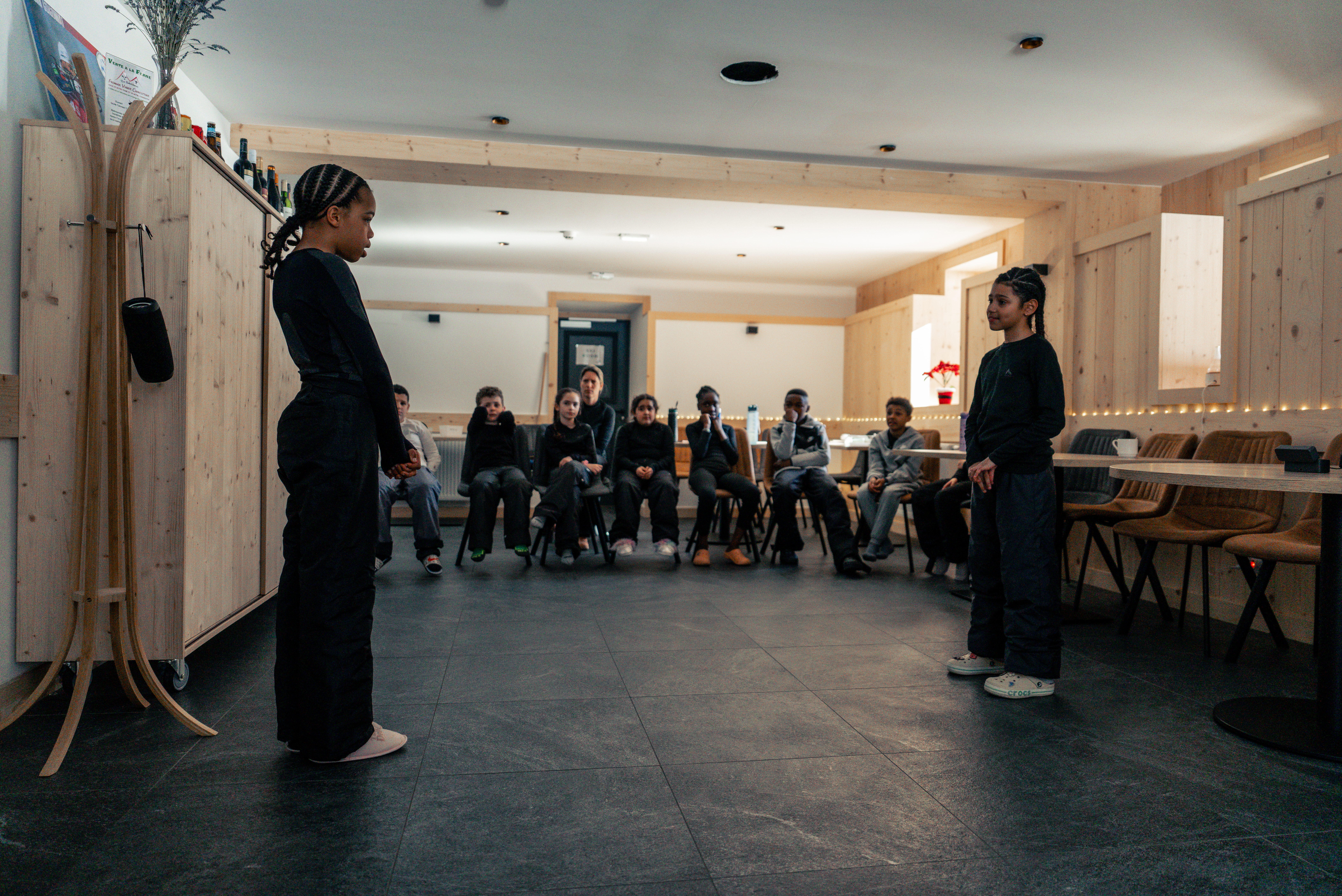 Mais le séjour ne s’est pas limité au ski. Chaque après-midi, les enfants ont participé à des ateliers de théâtre où ils ont pu jouer de petites scénettes, développer leur imagination et gagner en confiance à l’oral. Des cours d’anglais étaient également proposés, permettant d’apprendre tout en s’amusant.